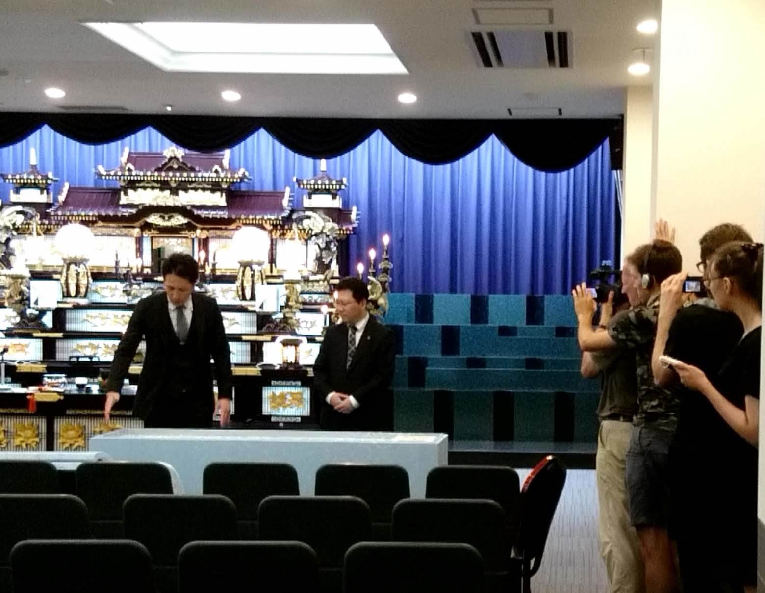Real funeral parlor staff were used as-is. Poignant scenes include checking coffin sizes and Ishii actually getting into a coffin.