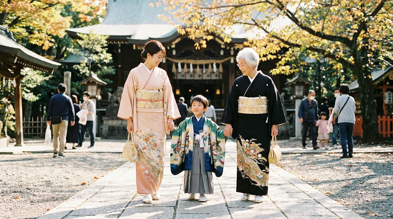 You want both grandparents at Shichi-Go-San or enrollment. There's no grandma to help with kimono dressing. You want a three-generation family photo.