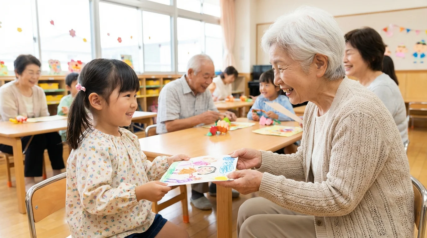 Warm, dignified senior female staff matched to your preferred age and demeanor. They project a natural grandmother image, interacting gently with grandchildren.