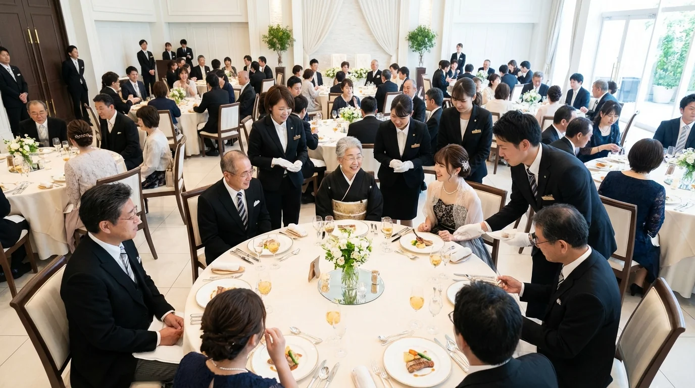 She needed someone to attend her wedding as her paternal grandmother, who had passed 2 years ago and was supposed to attend with grandfather. We arranged a dignified female staff member in her 60s. In formal kimono, she warmly watched the bride and politely greeted guests.