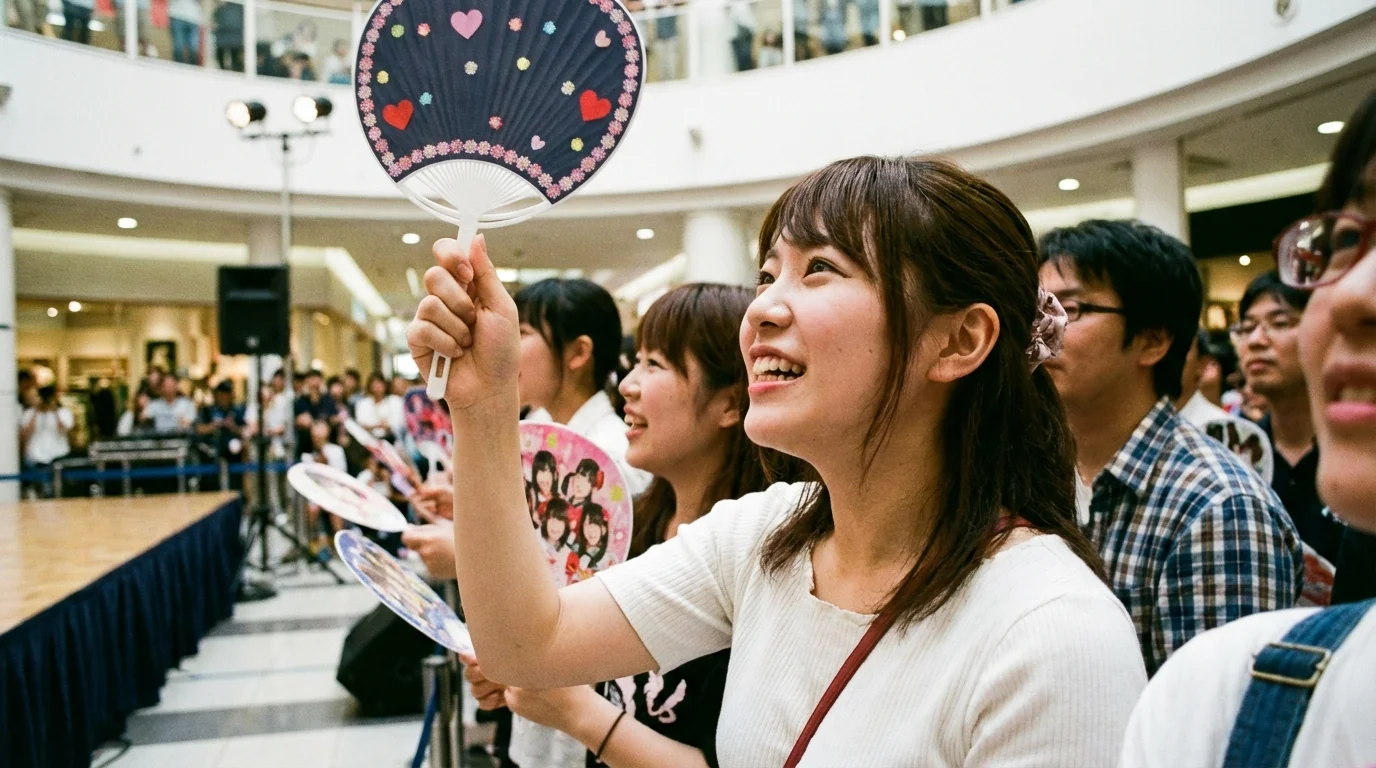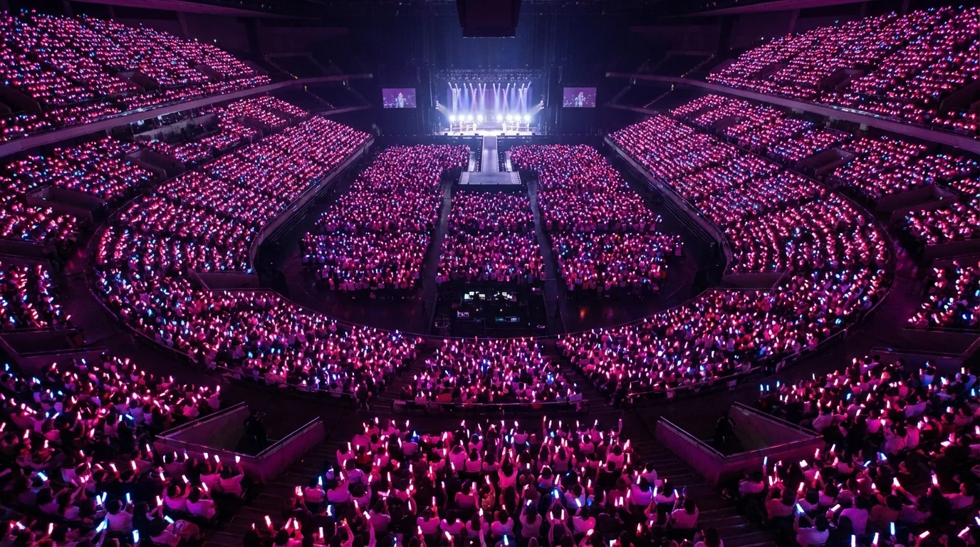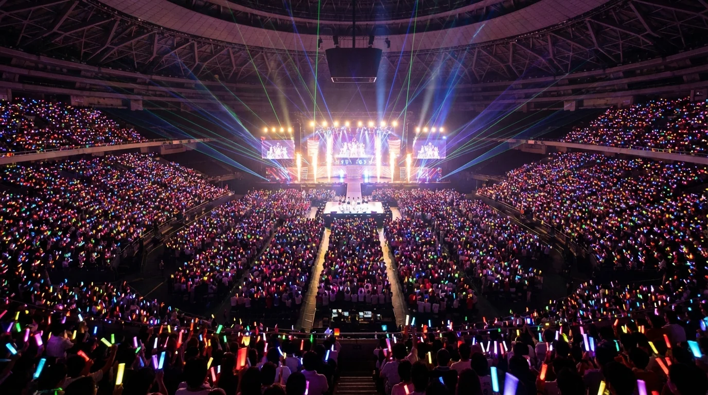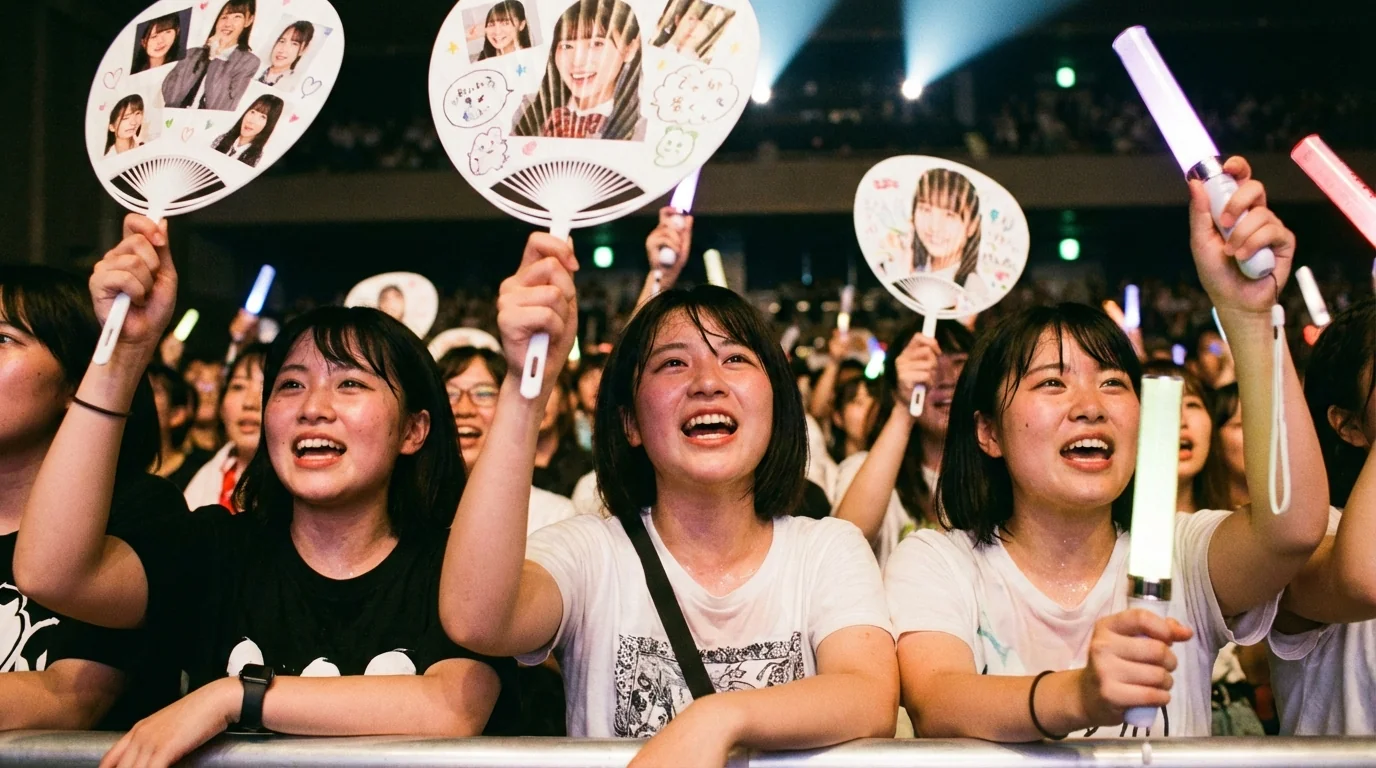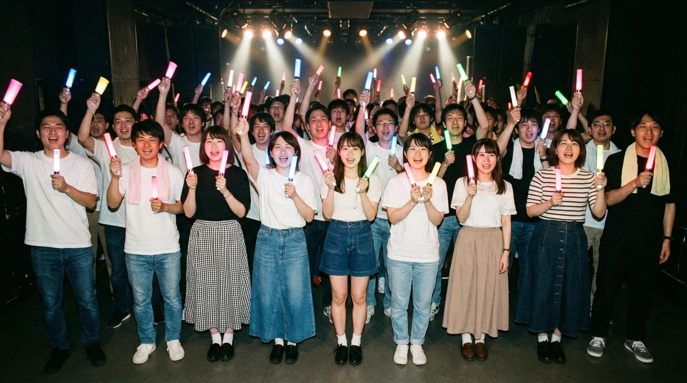 Organized fan sections with coordinated cheering, penlight colors, and call-and-response. Making your group's fan section the loudest and most impressive.
