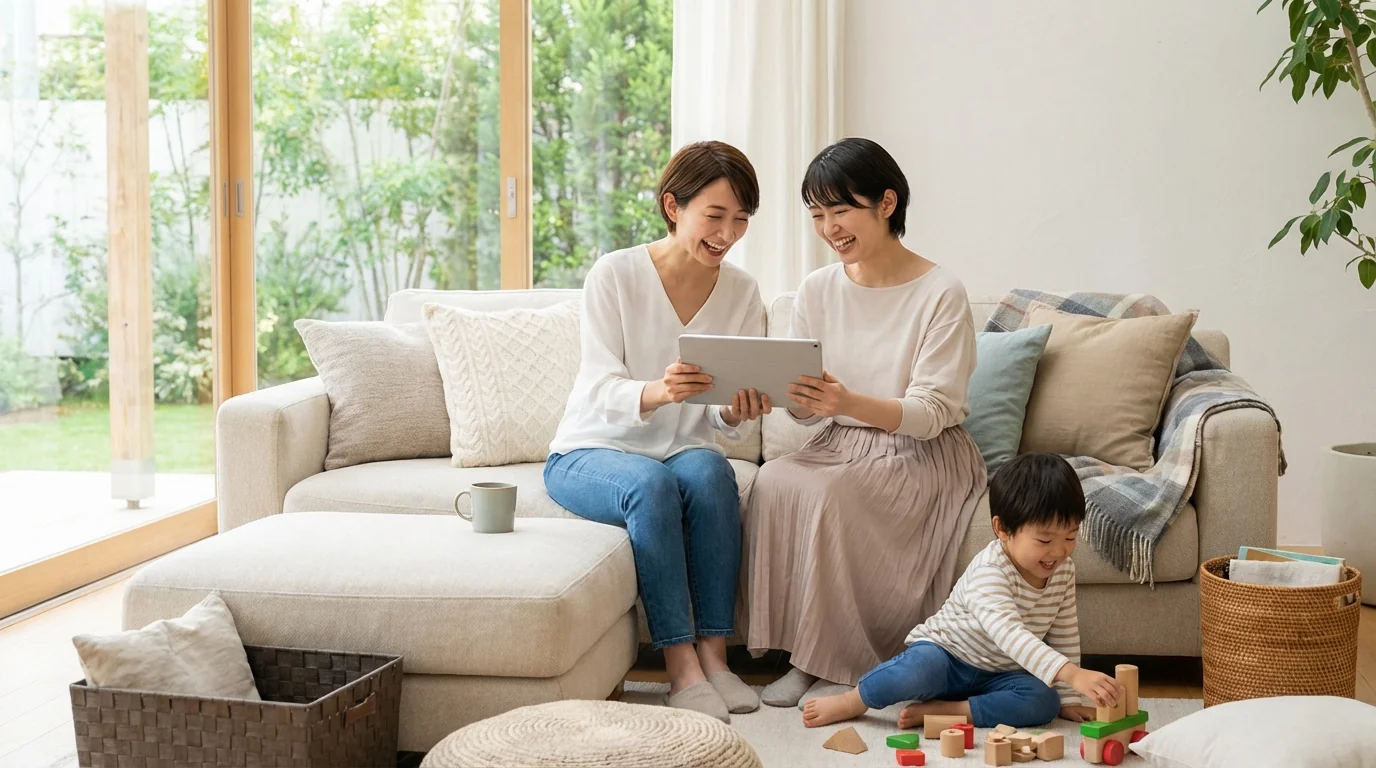 With a family composition of a couple in their 30s and 2 elementary school children, we expressed happy living in a new home. We shot scenes in each room -- living room, kitchen, children rooms -- stimulating prospective buyers imagination with realistic family scenes that looked like actual residents.