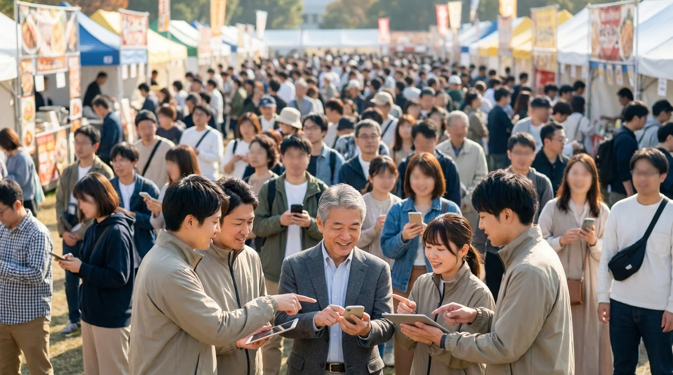 A regional gourmet contest required advance web voting with top 10 advancing. Low SNS presence and unfamiliar with digital marketing, 80 staff registered and voted on the dedicated site.