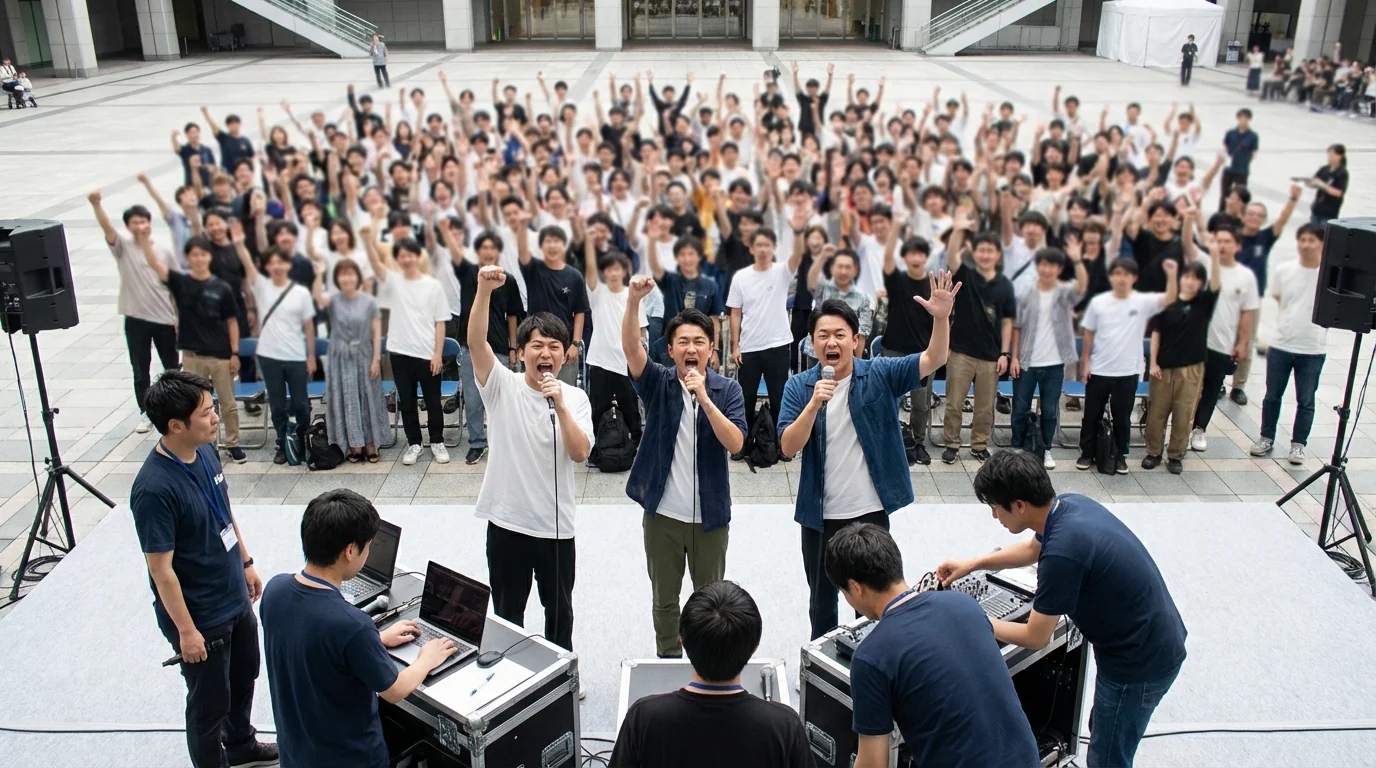 MCバトルでは観客の盛り上がりが審査に直結します。パンチラインでの歓声、フリースタイル中のコール、延長戦を求める「もう1本!」のコールなど、ヒップホップ文化を理解した応援が必要です。一般的な応援団では不自然さが目立ってしまいます。