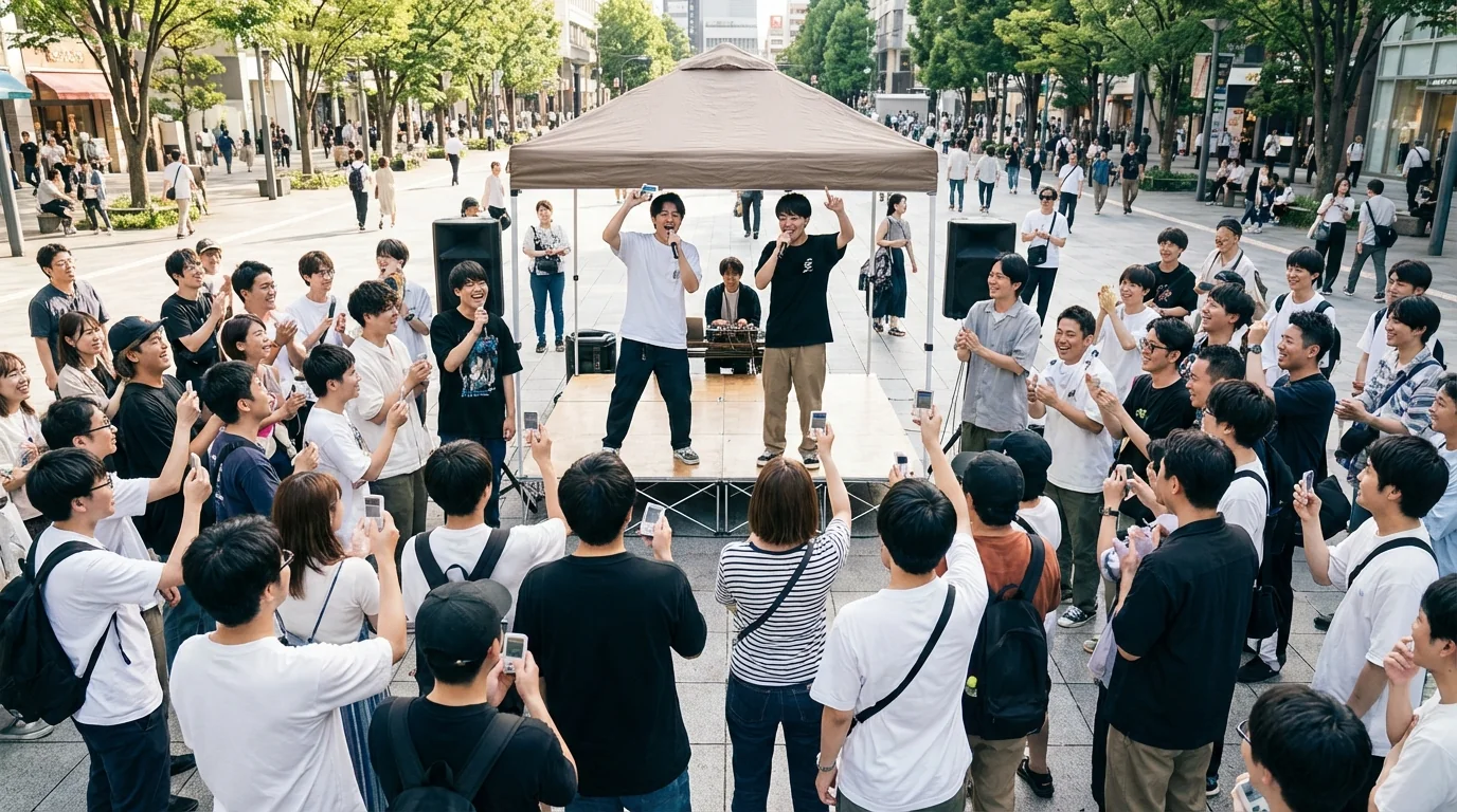 拍手の量と歓声の大きさが勝敗を分ける音楽コンテスト。 ロック・ポップス・ヒップホップ・ジャズなど音楽ジャンルを理解したライブ慣れした応援団が、ライブハウスやコンテスト会場の最前列で全力の盛り上げを展開し、確実に投票します。拍手メーター審査・声量審査・挙手投票・投票用紙など全形式に的確なタイミングで対応。オンライン予選のSNS投票にも対応し、あなたのバンドの優勝を全力でサポートします。秘密厳守・全国対応。
