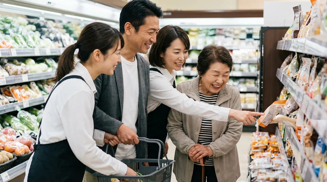 糖尿病で食事制限がある78歳の母。一人で買い物に行くと、つい甘いものを買ってしまい血糖値管理が難しい状況でした。スタッフが栄養面を考慮しながら一緒に食材を選び、成分表示の確認や低糖質の代替商品の提案もサポート。