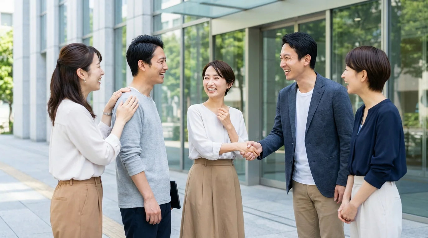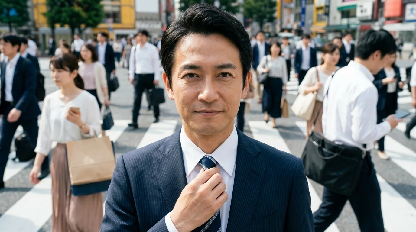 朝の出勤シーンと夕方の退勤シーンの両方に対応できる5名を手配。同じ人物が朝は颯爽と歩き、夕方は疲れた表情で歩くという時間帯による演じ分けも行いました。服装の微調整やカバンの持ち方まで時間帯に合わせて変化をつけました。