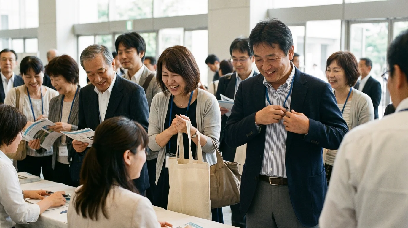 イベントの雰囲気やターゲット層に合った来場者風の通行人を手配。チケットを手にする人、期待に胸を膨らませて入口に向かう人、出てきて感想を言い合う人など、イベント前後の活気あふれる様子をリアルに表現します。