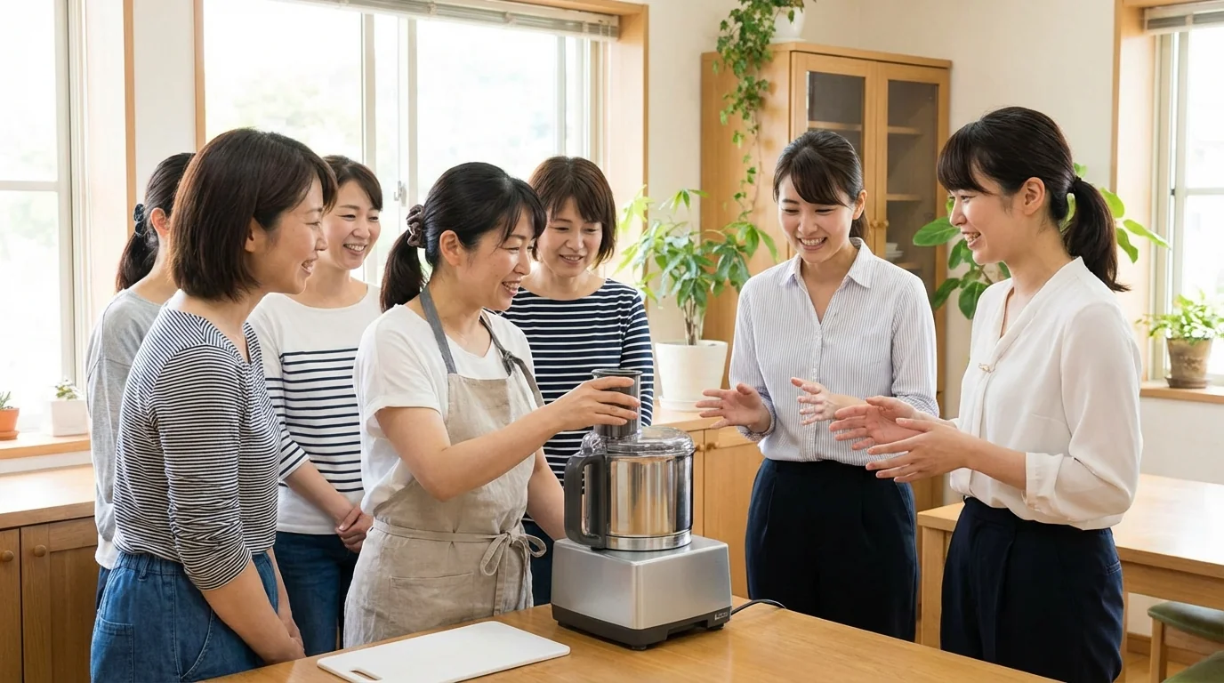 30代〜50代の主婦20名を対象に、新型フードプロセッサーの1週間自宅使用テストを実施。操作性・洗いやすさ・収納しやすさ・レシピブックの実用性・騒音レベルなど日常使いの観点から15項目を評価。使用シーンの動画撮影も一部のモニターに依頼し、操作時の困りごとを可視化しました。