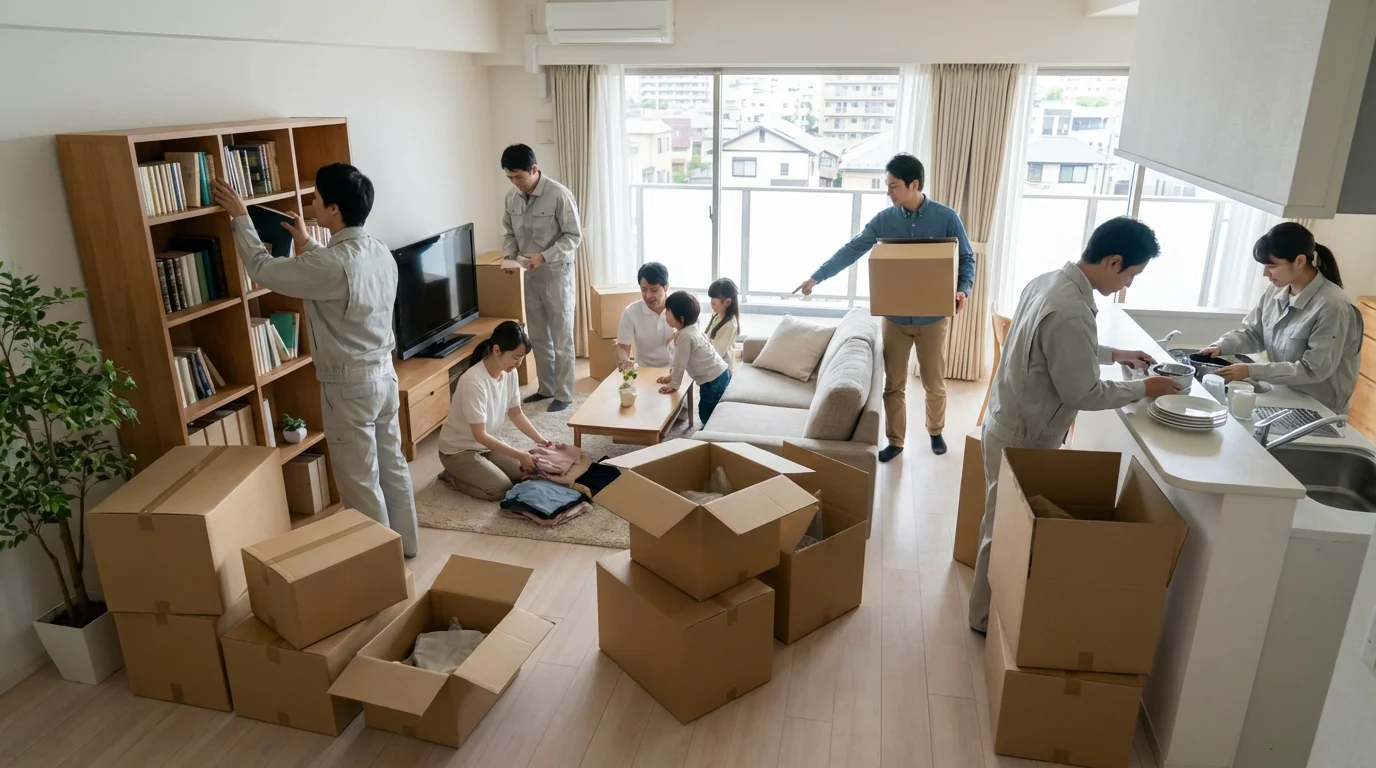 荷造り代行(X09)とセットでご利用いただくと、引越し前の梱包から新居での荷解きまで一貫してサポート。引越しの負担を大幅に軽減します。