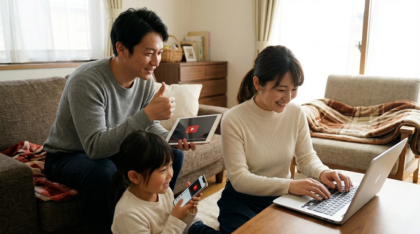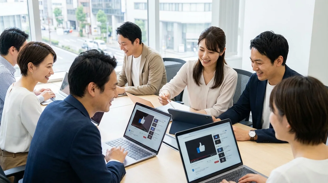 ファミリーロマンスでは、スタッフが個人のYouTube・TikTokアカウントで動画を最後まで視聴し、高評価ボタンを押し、コメントを投稿します。再生回数の水増しツールや自動再生bot・複数アカウントは一切使用しません。実在するアカウントによる自然な視聴行動のため、プラットフォームの不正検知に引っかかるリスクがありません。