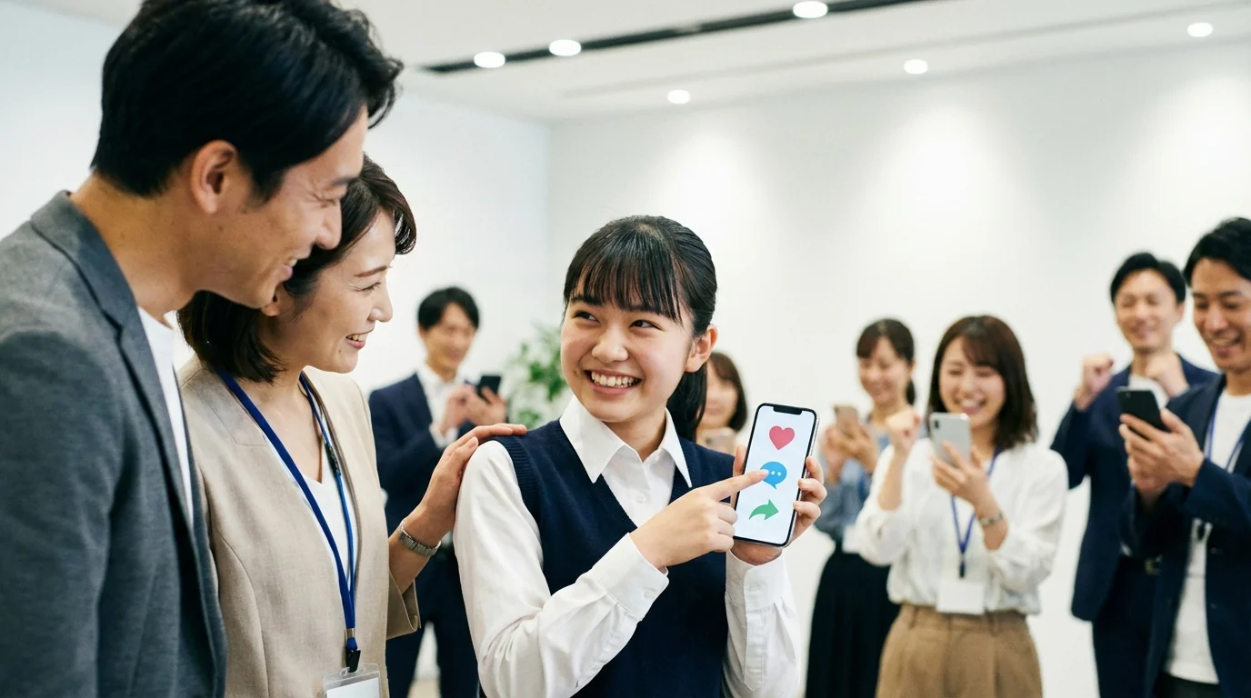 アパレルブランド主催のTikTokダンスチャレンジで、いいね数+コメント数が審査基準。フォロワー500人で入賞ラインに届かない状況。当社から40名のスタッフが投稿直後の初動に集中してエンゲージメントを高めました。