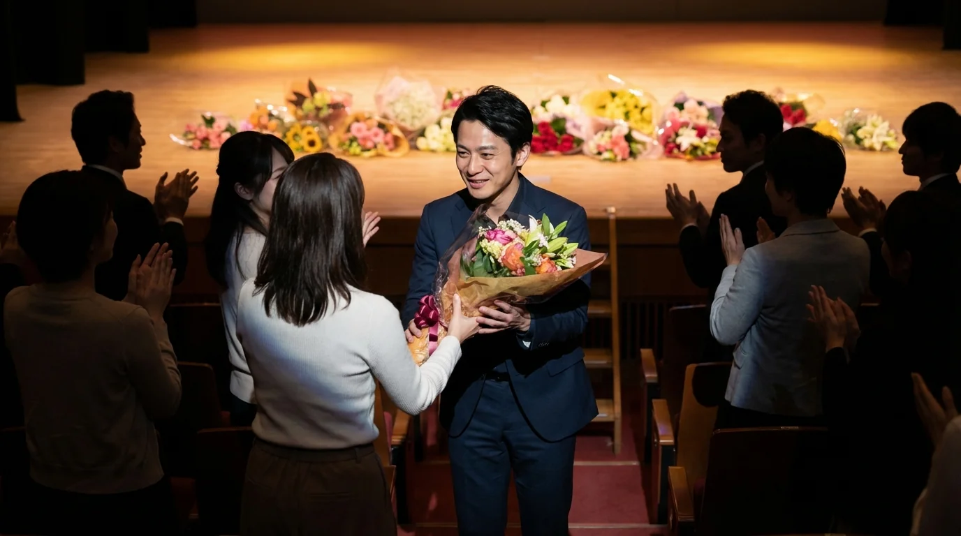 "初めての主演舞台で観客代行をお願いしました。チケットが半分も売れず本当に不安でしたが、50名のスタッフを手配していただき満員の客席に。カーテンコールでスタンディングオベーションをいただいた瞬間、涙が止まりませんでした。秘密厳守で安心して依頼できました。"