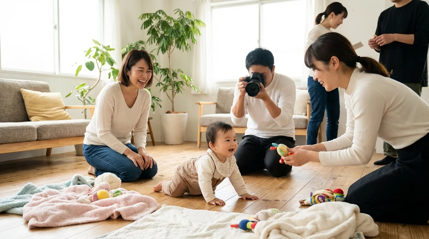 テレビCMやウェブ動画の家族シーンで赤ちゃんの出演が求められている。安全に配慮しながら撮影できる赤ちゃんを探している。