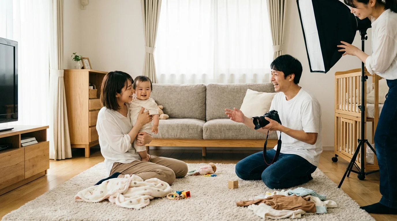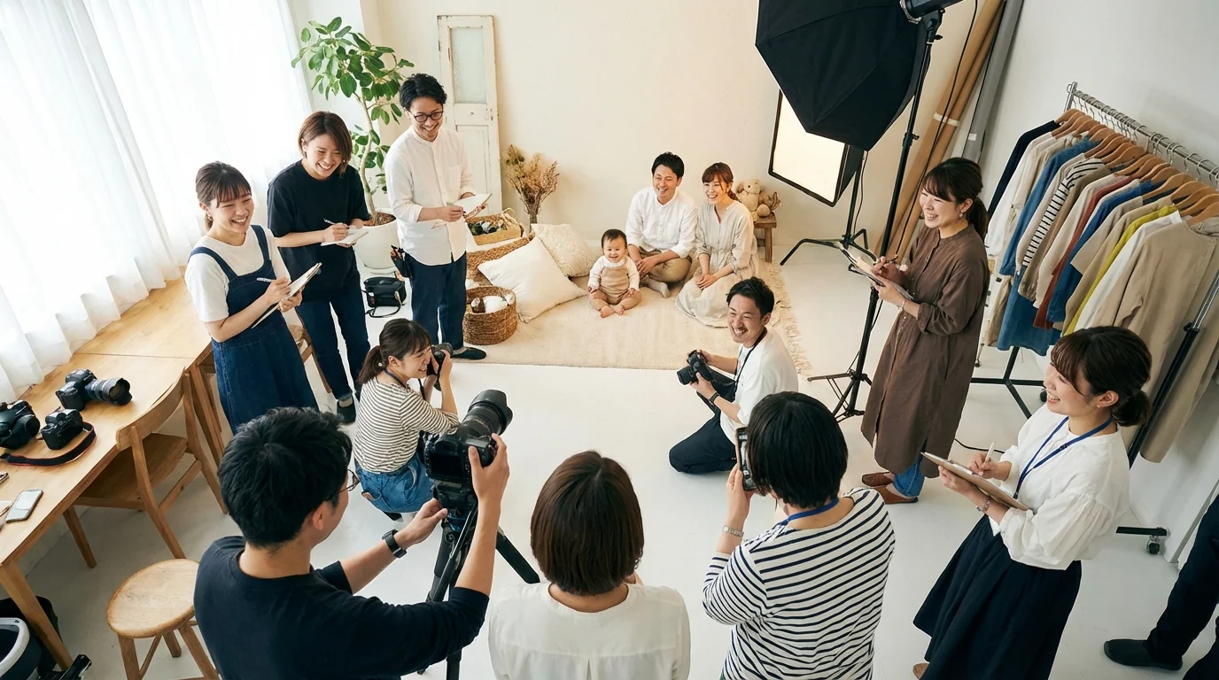 ベビー服・ベビーカー・ベビー食品などの広告に赤ちゃんモデルが必要。商品の魅力を引き出す自然な赤ちゃんの写真を安全に撮影したい。