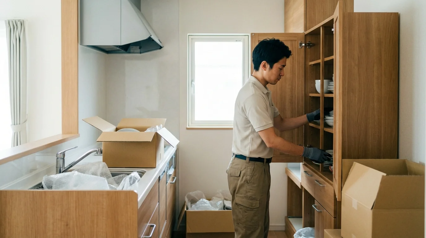 引越し業者の搬入完了に合わせてスタッフが到着。全ての段ボールを開梱し、食器・衣類・書籍・日用品をそれぞれの収納場所に配置します。その日の夜から快適に過ごせる状態に仕上げます。